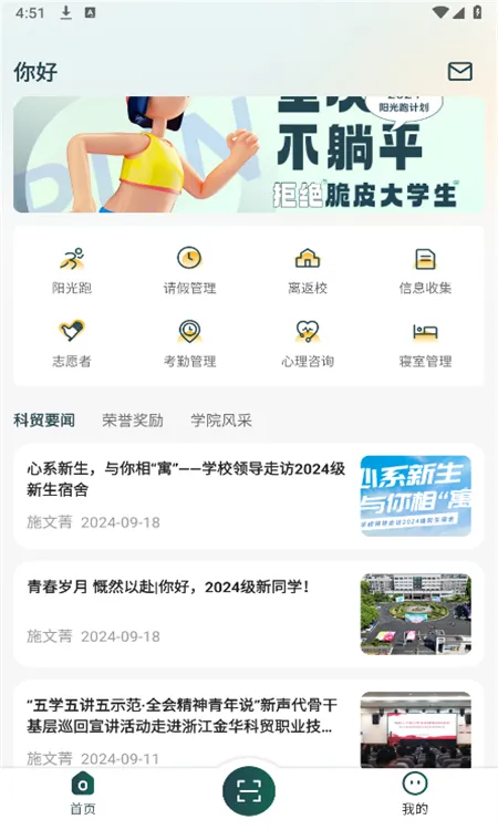青春科贸2025最新版本是浙江金华科贸职业技术学院官方为师生打造的智慧校园软件。集校园资讯、运动管理、请假考勤等多功能于一体,能实时记录运动数据、推送资讯,简化各类流程,满足校园多样需求 。
