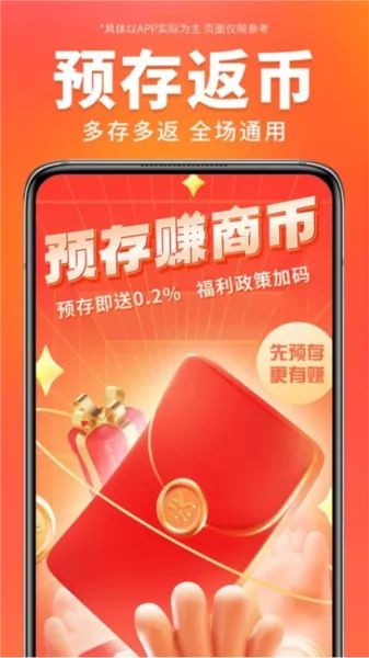 3、优惠多多:包含多种多样的优惠资源,还有预存赚商币活动,存得越多赚得越多,有效降低购物开支。