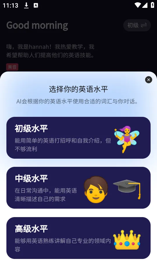 它提供一对一AI外教服务,通过对话教学,多种趣味任务让人循序渐进学习,告别社恐大胆开口。超真实虚拟人功能有多种AI角色可选,不同声线、性格和爱好,带来丰富趣味互动。在对话中,AI教练会实时纠正语法发音错误,还能将中式英语润色成地道表达,思路卡壳时也能给予提示。