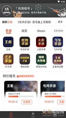 3、租赁价格优惠:推出租2小时送1小时、0.1元体验精品账号等活动,玩家能用较少花费,享受更长账号租用时间。