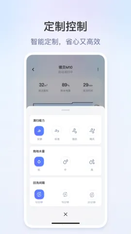 该App优势明显,界面简洁清晰,操作流畅,上手轻松,还提供多种语言选择。它能实时显示清扫路径,让清扫情况一目了然;拥有多种清洁模式,可智能定制,省心高效。此外,还具备预约清扫、实时路径查看、耗材情况监控、划区清扫、扫拖禁区设置、吸力水量调节、固件升级等功能,切实解决家庭和办公清扫问题,提高清扫效率。