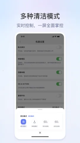 3、功能多样:可设置不同清扫模式和计划,还能进行远程操控、划区清扫、设置扫拖禁区等,满足各种清洁需求。