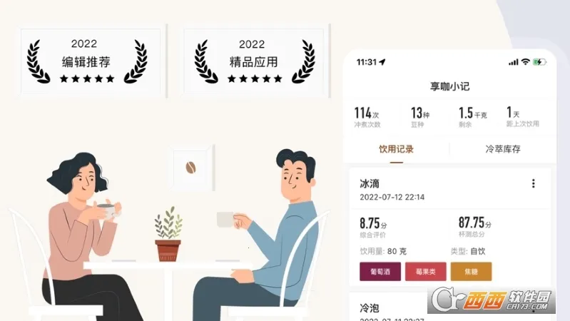 3、管理功能多样:内置磨豆机、冲煮器具等管理模块,解决设备设置与选择问题;还能对精品咖啡豆进行多方面信息梳理与评价。