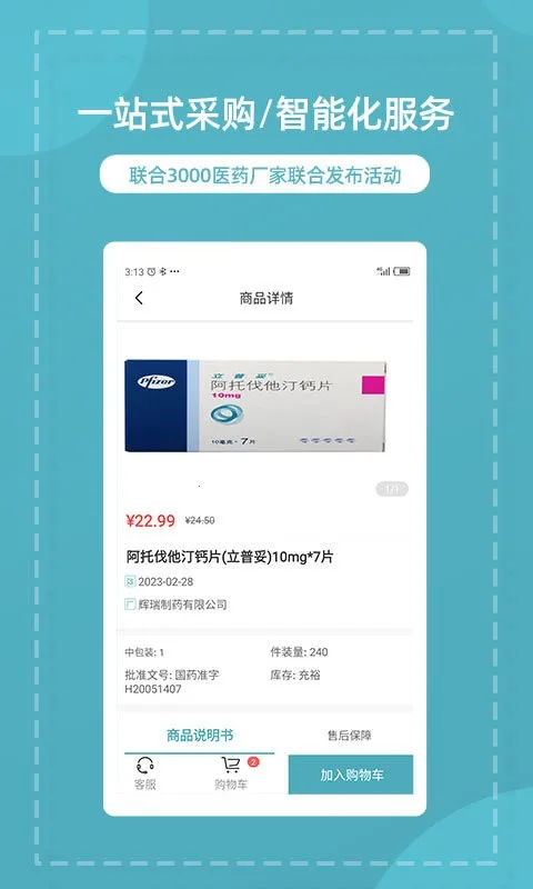 <3> 服务智能化:联合3000多家医药厂家,提供智能化服务,快速采购,还有智慧化产品线推荐。