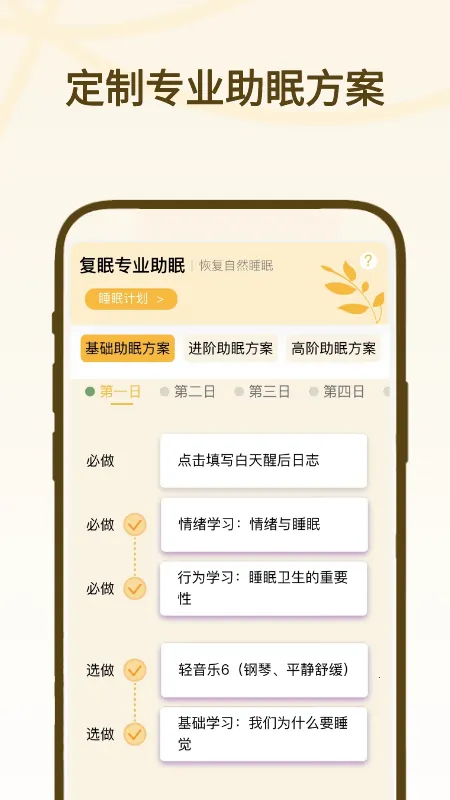 1 为失眠用户量身打造,任何睡眠困扰用户都能在此获得更大帮助,睡得不踏实也有多种方式缓解。