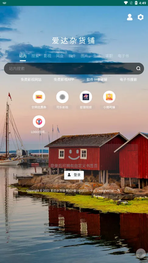 爱达杂货铺是一款资源聚合器,功能丰富,涵盖工具、学习、影视、小说等多类网页资源,全部免费无广告。界面简洁,操作方便,支持多种登录与下载方式,资源更新及时,能满足不同用户需求 。