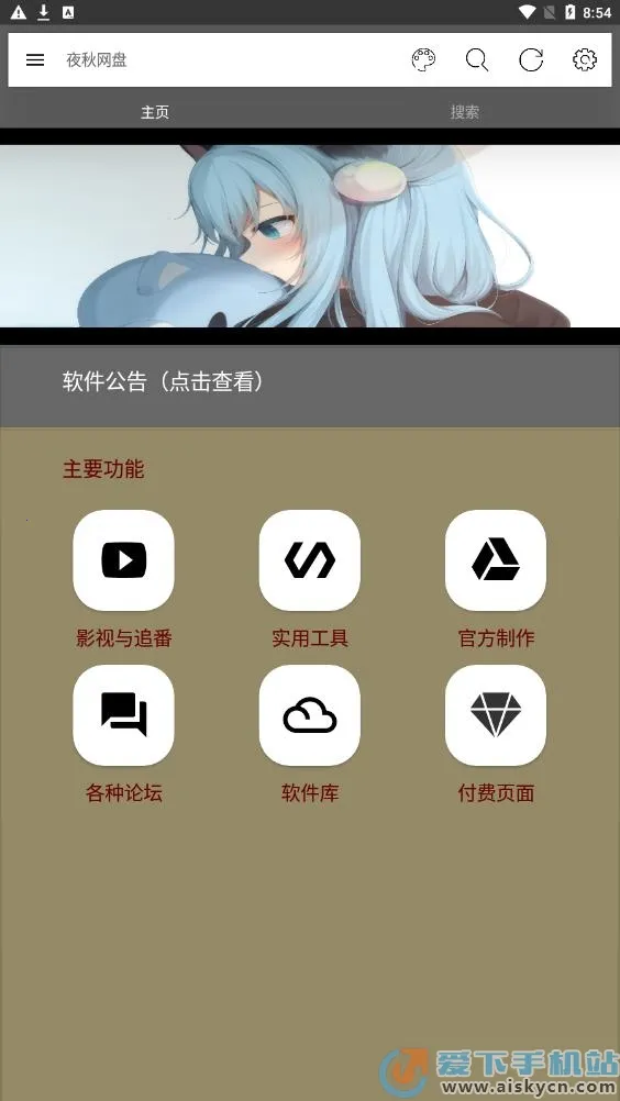 夜秋网盘 2025 是网友自制的网盘聚合软件。功能强大丰富,有影视追番、实用工具等。界面简洁免费,资源海量,搜索快。支持多方式共享文件,有备份恢复、自动分类等功能,操作简单易上手 。