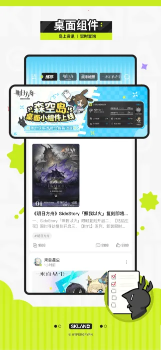 它还拥有多种实用功能。特色版区丰富,如明日方舟专属版区、纳斯特港特色版区等,满足不同需求。每日签到能领取合成玉、龙门币等游戏道具奖励。账号绑定、数据查询等游戏工具齐全,方便玩家管理账号和获取信息。森空岛功能丰富,能为玩家带来优质游戏社区体验 。
