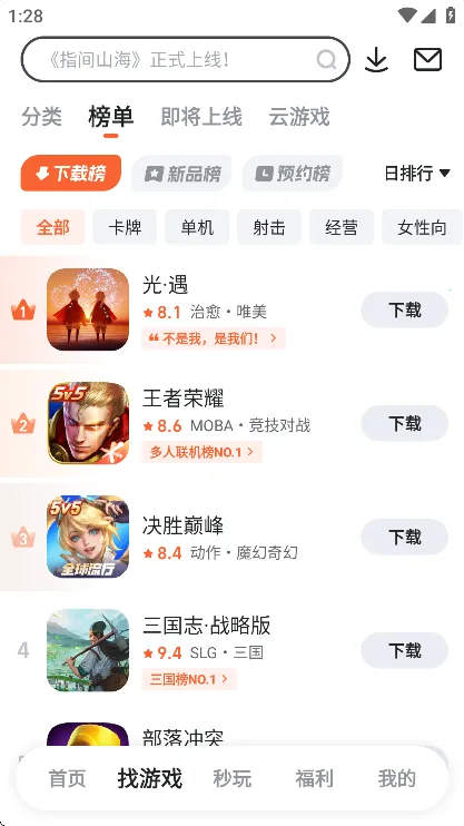 游戏下载服务出色,有数十万款精心挑选的各类型游戏,还提供高速下载,助玩家快速获取心仪游戏。
