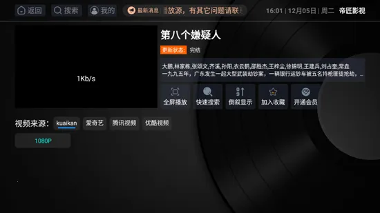 它有诸多特点。在资源方面,列表推荐最新影视,汇集热门和新电影等,还有丰富榜单好评资源,经典影视剧情也齐全。搜索功能完备,可随时找想看的视频。在体验上,支持双播,有精准影片推荐,全是高清画质还能自由调节播放速度。而且即便网络不佳也能观看,能根据观影偏好精准推片,支持多语言字幕,还有后台播放功能,方便用户在做其他事时也能观看影片。总之,帝匠影视2025能为用户带来丰富且优质的影视观看体验。