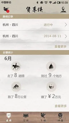 在操作方面,简单便捷,用户能轻松上手,有助于提升工作效率。其中“走镖”模块,精准记录货运路线,详细计算收支并贴心提醒收账,方便司机记账管理。“江湖”板块让找货接货更高效,还提供路况提醒以及丰富的货车保养知识,为旅途保驾护航。“飞鸽”实现与好友免费通话,便于交流沟通。