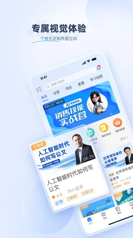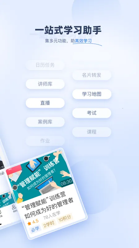 **海量课程**:有着丰富的专业课程,全岗覆盖,能满足不同用户的学习需求,无论是技能提升还是营销管理等方面都有涉及。