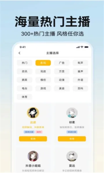 掌上配音2025官方正版是一款基于语音合成技术的专业配音软件。其内置多位智能与真人主播声音,普通话、方言、英语等多种音色任选,能满足短视频广告宣传、企业宣传片、影视解说等多样配音场景需求。