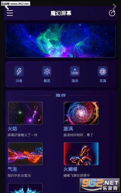 其拥有上百种动态粒子特效,像烟花、闪电、海洋等,带来丰富视觉体验。内置丰富壁纸分类和个性主题,涵盖自然、幻想等多主题,可随心切换风格。每天更新精美特效,还有独家隐藏功能等待探索。