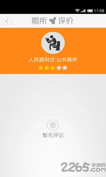 3 评价丰富:用户可对使用过的厕所进行评价,分享是否有纸、充电器、wifi等体验,帮助他人更好选择合适厕所。