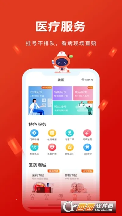 它集保险保障、就医服务与健康管理于一体。**在线投保**便捷,3 步即可为用户和家人获取日常医疗、重大疾病、意外伤害等保障。**智能核保**高效,3 分钟为非标准体人群给出核保结论。**极速理赔**更是亮点,快至 60 秒理赔款到账,一键上传资料,告别繁琐流程。