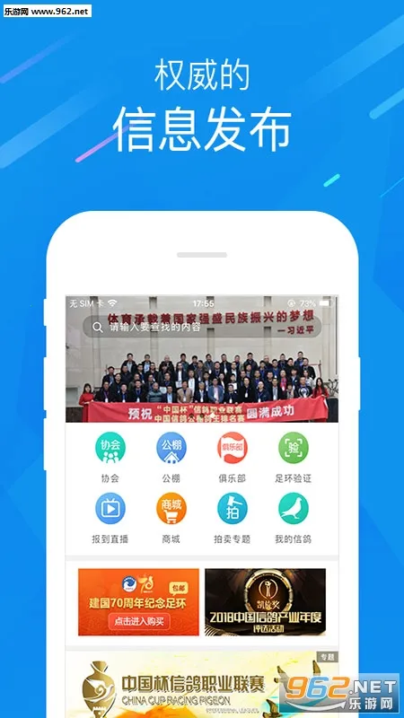 中国信鸽协会官方推出的信鸽资讯平台,成立于1984年。提供权威赛事信息、协会动态,有专业赛事管理与个人荣誉统计。支持足环验证、直播等,是鸽友交流及了解信鸽运动的实用平台 。