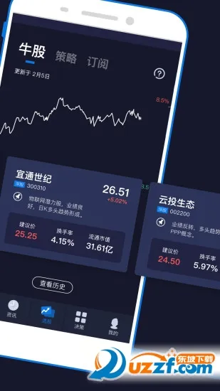 该平台与国内 70 多家券商合作,支持股票自动交易,安卓版可快速实现无人值班全自动交易,即开即用,十分方便。它提供涨停热点等多种选股模式,股票实时推送。国内首家推出智能炒股手环,能震动提醒,实现股票行情实时信息价格监控和自动交易提醒。