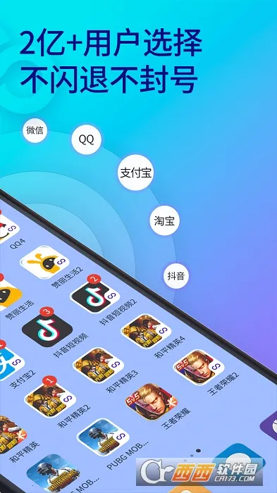 1、多开功能强大:支持微信、QQ、支付宝、淘宝等主流应用无限分身多开,还能实现游戏多开,养小号,自己组团打怪更欢乐,生活、商务、娱乐、游戏场景都适用。