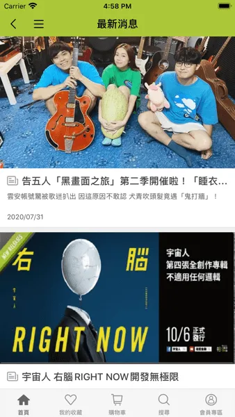 相信音乐(音乐购物汇)是一款面向乐迷的线上平台。它提供五月天、李宗盛、刘若英、告五人等众多人气歌手组合的实体专辑,用户能快速下单购买。