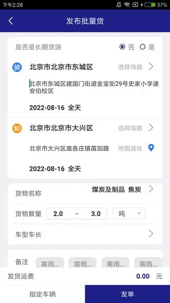 该平台操作简单易懂,流程闭环管理,使用起来放心。它会清楚记录派车时间、货物总量和类型等,方便分类管理订单,还能让货主及时查看货源数据,快速掌握货源情况。