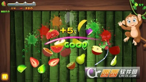 2、画面与音效出色:拥有3D图形和生动的声音,能给玩家带来很棒的游戏感受。游戏中还有对应的音效加入,让玩家享受掌间切水果的乐趣,体验相当到位。