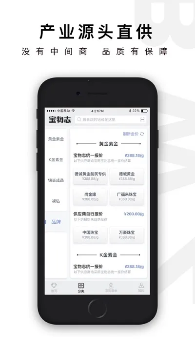 宝物志是一款专业的全球珠宝交易批发平台,专为黄金珠宝零售企业、门店、个体户等老板打造。它拥有海量珠宝商品,涵盖黄金、钻石、K金等10大主流品类。