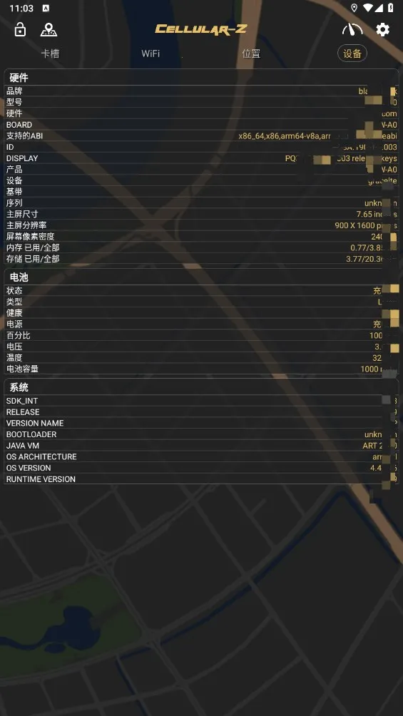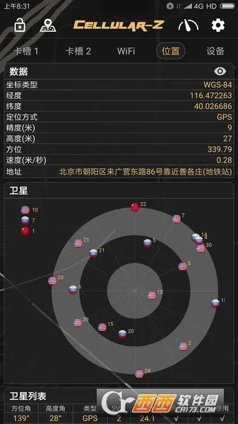 Cellular - Z是一款网络信息查看软件,能满足多方面网络信息查看需求。打开首页,可清晰看到卡槽1详细信息,包括办卡地点、时间、经纬度和驻留网络小区等,还有实时信号强度曲线,信号强度在 - 40到 - 98之间较理想,负数越大信号越强。
