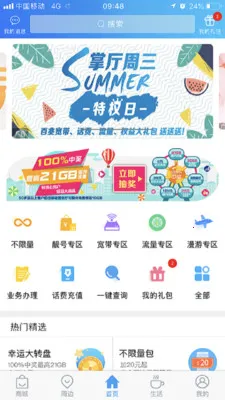 2、功能全面:涵盖靓号专区、宽带专区、流量专区、漫游专区等,能进行业务办理、话费充值、一键查询等,全部移动智能通讯业务可在线查询办理。