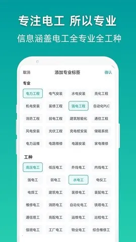1、岗位资源丰富:专注电工行业,覆盖高压电工、低压电工、水电工等全细分工种,从基础水电安装到高压设备运维,能满足不同技能水平求职者的需求。