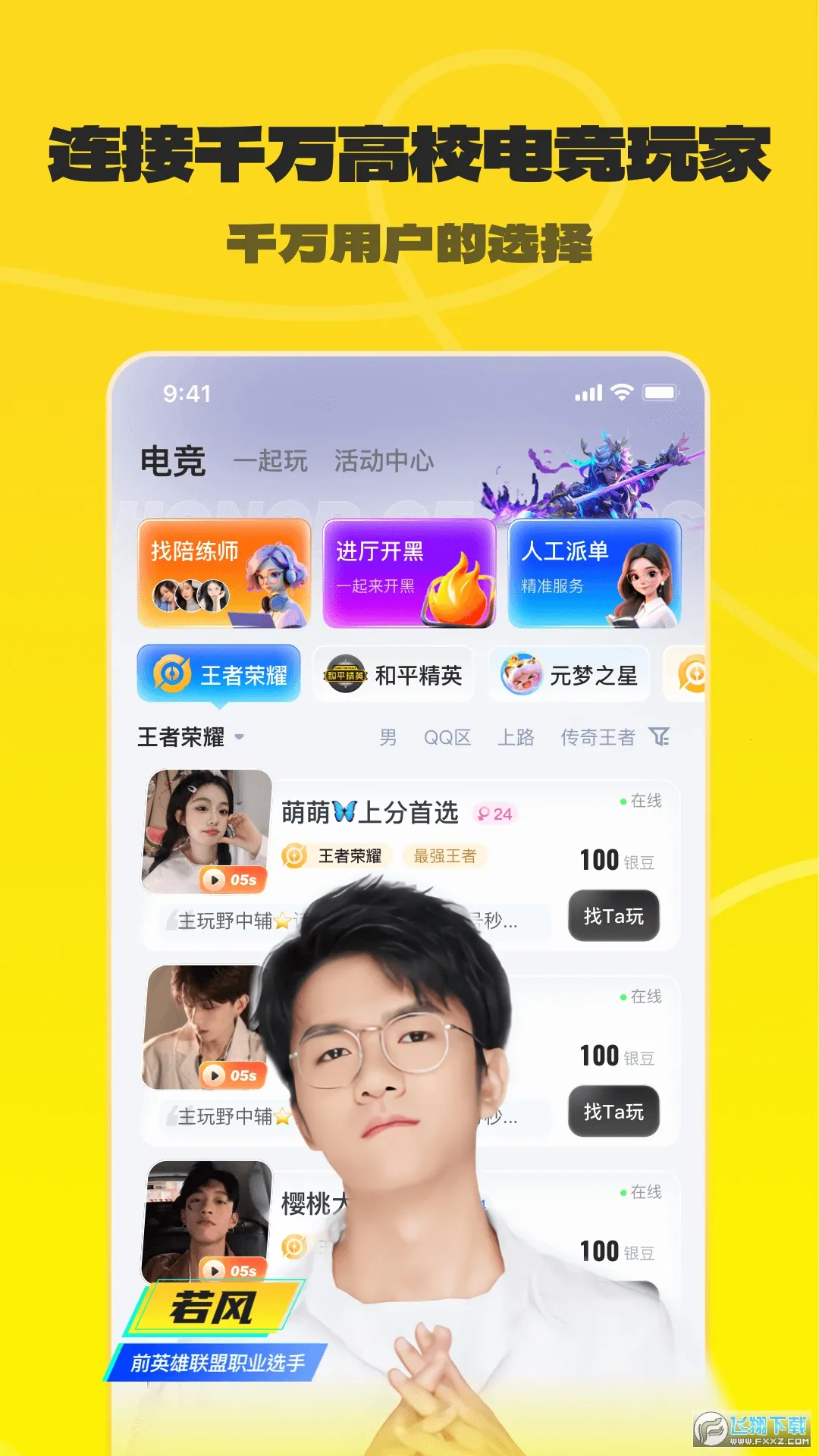 亮点包括是年轻人社交新选择,能和小伙伴组队圆梦电竞赛事,可通过真实陪玩开黑遇见彼此,覆盖众多一线热门游戏。