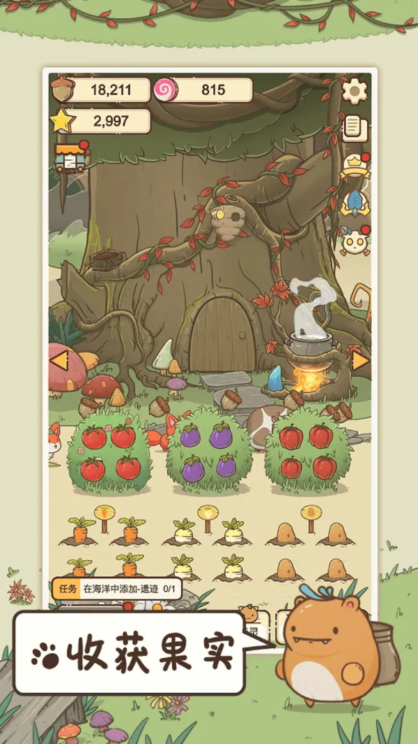1、玩法丰富多样:在游戏里可以收集橡果、种植果蔬、饲养动物、建设乐园、装饰树屋、美化海洋等,还能体验庄园主人外出探险获取物资的乐趣,拥有多种不同玩法等待玩家尽情体验。