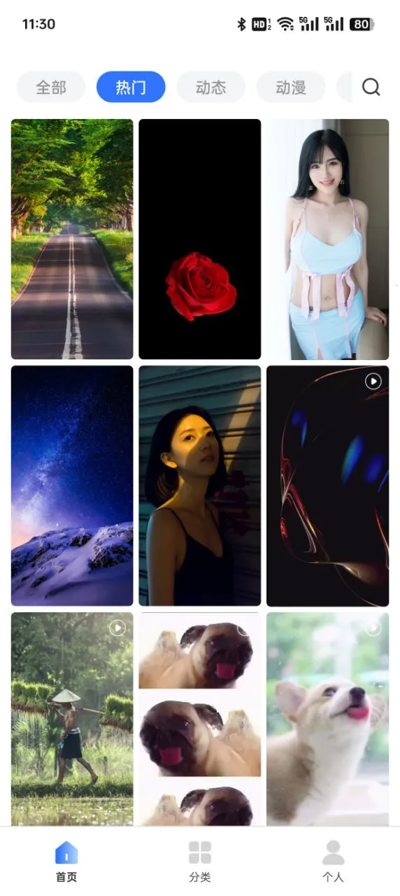 1、丰富资源库:萌趣动态壁纸2025官方正版拥有同类型平台中最庞大的资源库,无论是静态壁纸还是近期流行的动态壁纸,动漫、偶像、动物、风景等各类主题应有尽有。只需在搜索栏输入关键词,如人物题材、作者等,就能快速锁定所需壁纸。