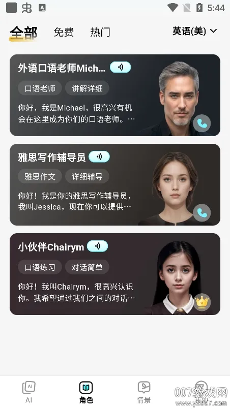 疯狂练口语是免费安卓手机英语学习软件,借助智能AI提升英文口语。资源库涵盖不同阶段课程,可按需挑选。界面简洁,有超300个场景对话,背单词能听发音、获评分,离线也能学,值得下载。