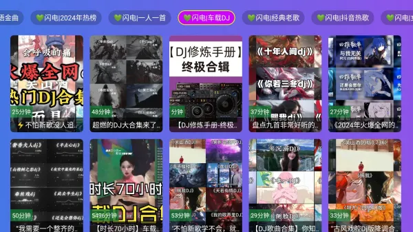 闪电音乐是一款可让用户免费听音乐的软件。其设计采用横版,使视野更宽敞。平台汇集多类型音乐,有国语金曲、粤语金曲、年度热榜、车载DJ等供用户选择。