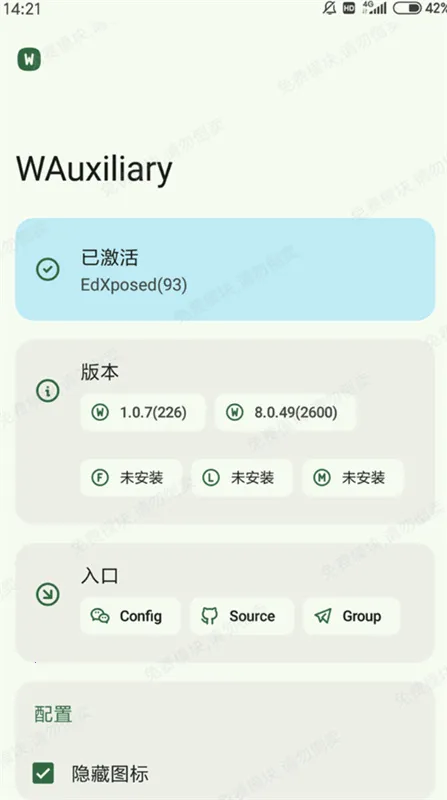 WAuxiliary是一款依托XP框架的微信功能拓展软件,功能齐全,操作简单易上手,兼容性强,支持多安卓机型。有虚拟定位、阻止撤回等多样功能,全免费,还能转发朋友圈、设自动回复,助力社交管理。