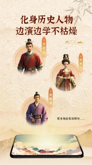 2、场景丰富覆盖知识:超过300个经典历史场景重构,从春秋战国到明清轶事,覆盖中小学必备文史知识点,孩子可在角色代入中自然吸收传统文化精髓。