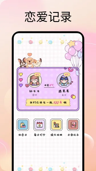3、数据见证:自动累计恋爱天数,用数字见证爱情旅程的天数与成长轨迹,让情侣直观感受爱情的发展。