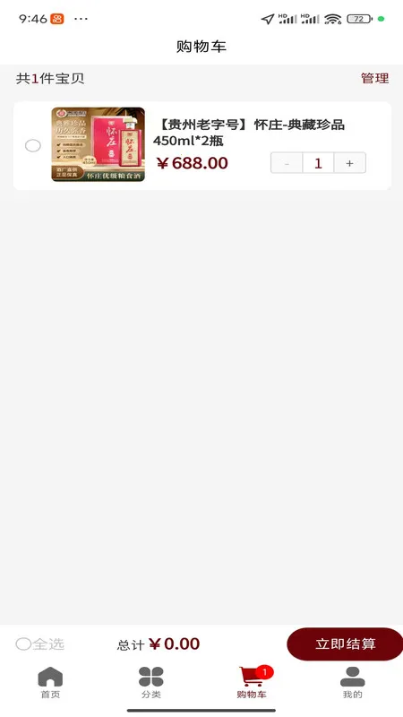 下单买酒流程便捷,打开 app 登录账号后,能在首页查看推荐酒品,有爆款专区、精品品鉴等板块;分类页面查找产品更方便,展示丰富酒水产品。一键点击酒品可查看详情、秒速对比,看中即可付款。