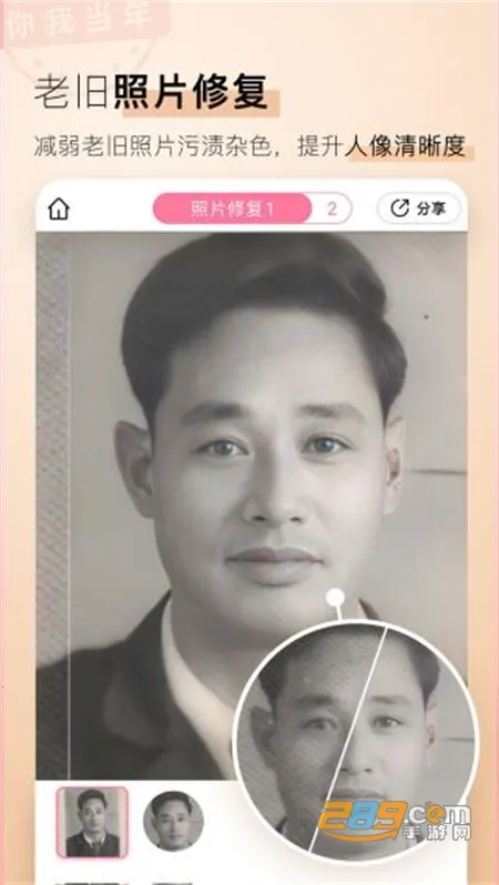 你我当年AI画质修复安卓版可通过AI修复老旧残缺照片,能高度还原模糊老照片,最高达4K画质。支持批量修复图片、修复视频,还能制作写真集、证件照等,有多种特色功能,4.0.8版优化交互与性能。