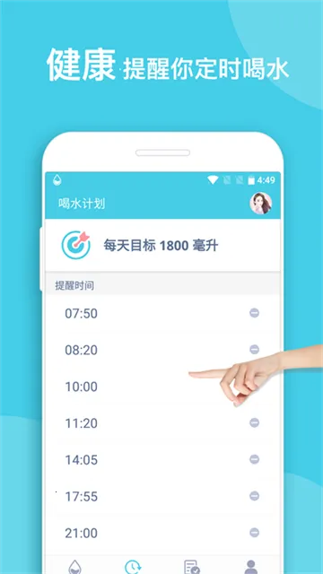4、多场景适配:允许自定义单次饮水量与提醒间隔,无论是办公室小杯慢饮还是运动后大量补水,都能匹配不同生活习惯。并且采用云端存储技术实现多终端数据同步,确保使用的便捷性。
