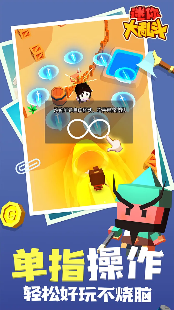 迷你大乱斗安卓版是一款休闲对战手游,以神秘迷你世界为背景。主打短时对战,每局仅需几分钟。玩法有单人副本和8人实时对战,可拾取武器道具。有多元策略、丰富模式与个性养成体系,画风萌趣。