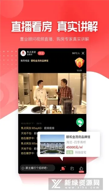 其特色鲜明,直播频道有专业达人讲解房产知识;房源丰富,涵盖新房、二手房、租房、公寓及海外房源;有聊天窗口,专家能随时解答买房或装修疑问。