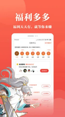 2. 免费畅享漫画盛宴,还能边看边收益,在家阅读漫画不再无聊。通过完成阅读任务、分享任务、邀请好友下载等轻松赚钱,任务丰富多样。