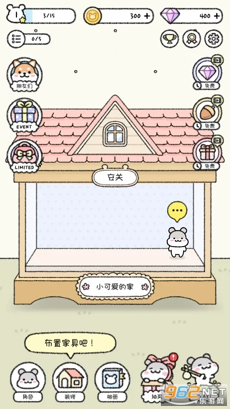 玩家能装饰仓鼠小窝,用丰富多样的饰品打造独特风格,满足个性化需求。与仓鼠亲密互动,打扫房间、喂食等,增进感情的同时赚取金币和奖励,不断扩大仓鼠屋。