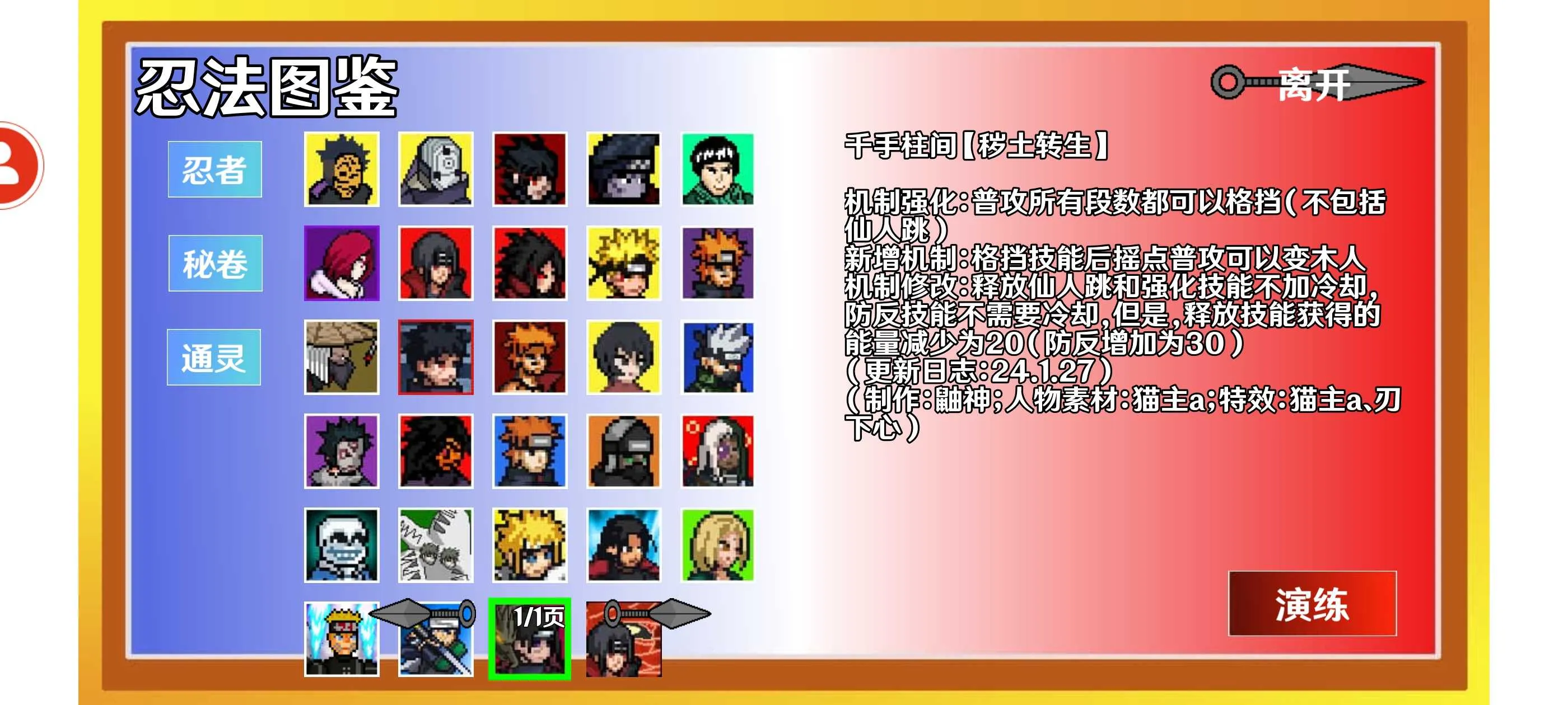 《像素火影luogai二周年》相关游戏是一款超有趣的创意动作闯关冒险游戏。在游戏里,有各种各样精彩的忍者对战冒险。它的角色技能魔改后操作格斗更加炫酷,华丽特效百分百还原,能带来全新视觉效果和不一样的战斗体验。比如柱间修改后,技能更厉害,一技能的木人强化,二技能融入更多元素,防反功能二合一。这里攻击方式和走位都得自己操作,很考验技巧,失误就可能受伤。还有专属配音对话,简单互动就能触发不同配音,告别枯燥。在玩法上,查克拉恢复要注意安全,决斗场能真人实时竞技,双方自由选角色搭配战斗。技能冷却时间得自己把握,抓住对手空隙找破绽。多种模式可尝试,格斗丰富刺激,经典角色、多样武器装备任你选,能满足你对动作游戏的各种需求,快来体验吧!