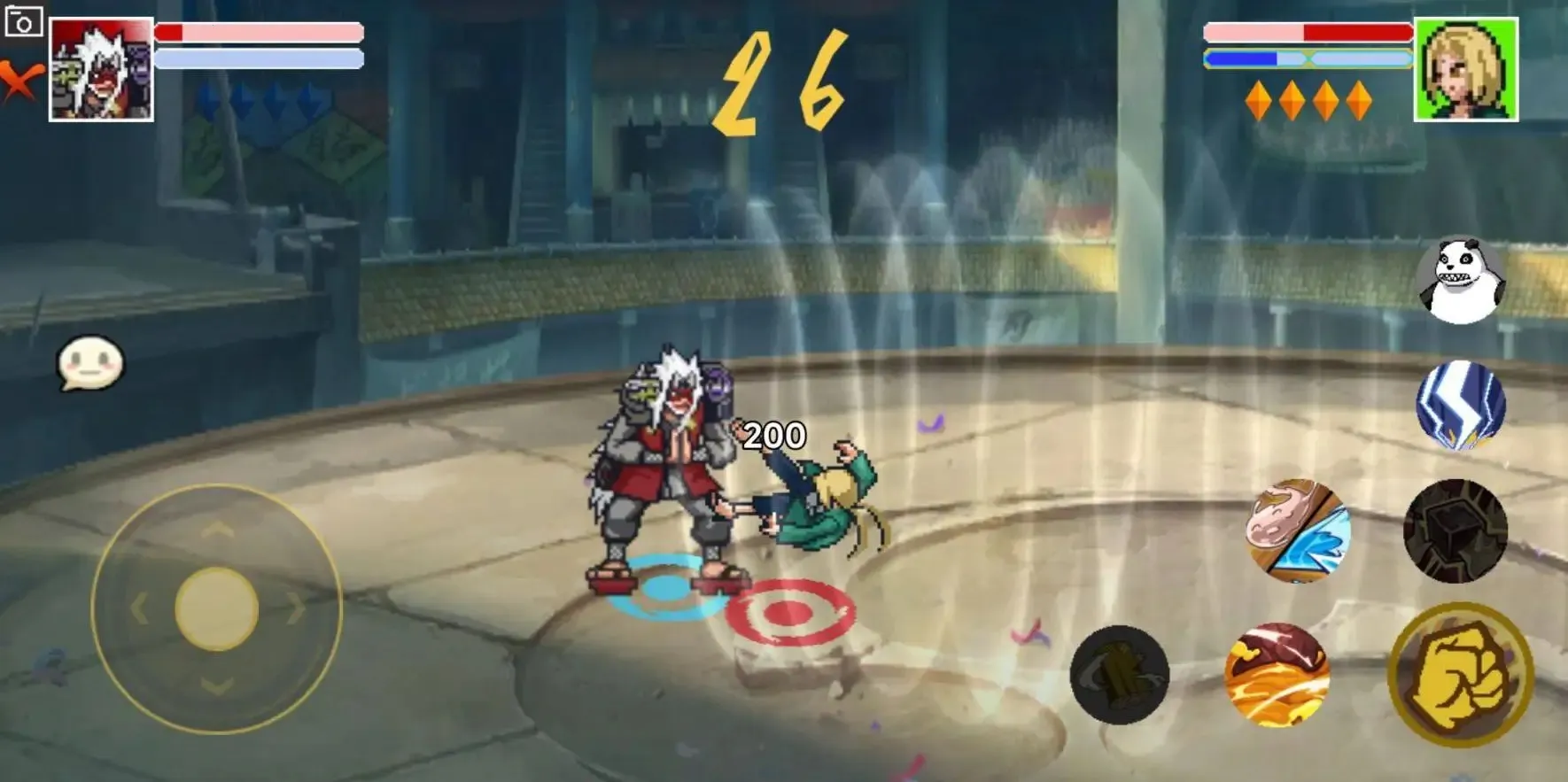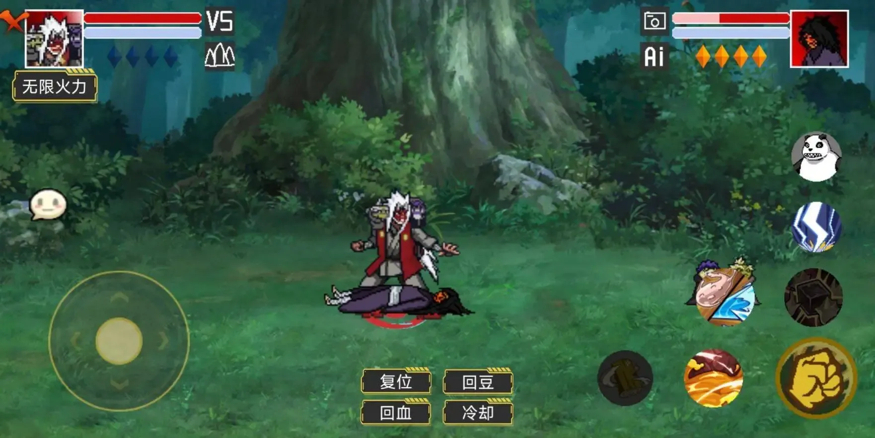 游戏优势明显,完美还原经典动漫火影忍者角色场景,经典像素街景画风勾起童年回忆。战斗中要注意血量和能量,合理运用才能击败对手。每个角色有必杀招,可演化更多技巧。操作简单,按界面按钮控制主角,点击头像随机获新角色,回豆按钮恢复豆豆开大招,复位按钮恢复默认设置。玩家能在这享受刺激战斗,体验像素火影冒险的乐趣。