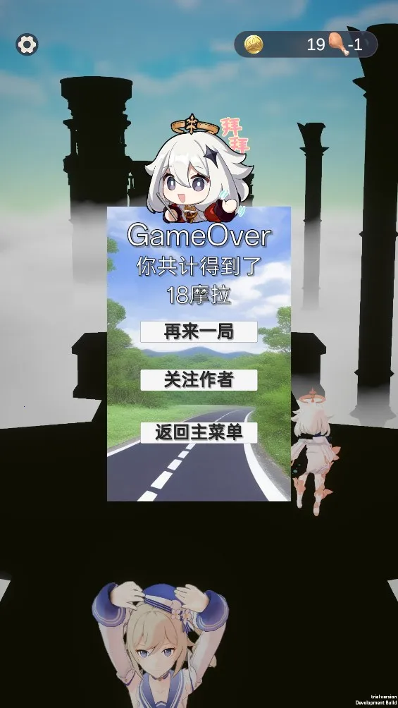 5、跑酷失败后,能够看到自己最终获得的摩拉数量