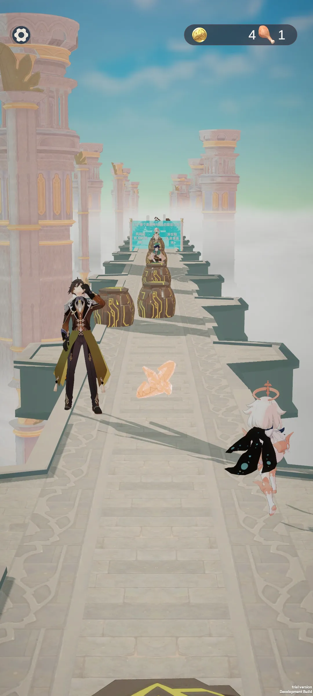 玩法上,通过手指滑动屏幕操控派蒙方向,上方鸡腿代表生命值,能看到收集的摩拉数量。回答原神问题,答错减摩拉,答对增多。前进路上遇其他人物可触发不同事件,跑酷失败能看到最终摩拉数量。