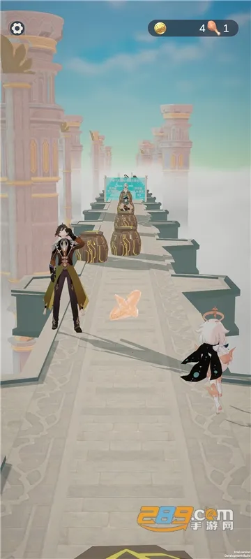 游戏特色鲜明,人物和背景采用原神素材,高度还原场景。多种原神 NPC 可互动并获相应道具。游戏速度递增,不断挑战自我获更高分数。